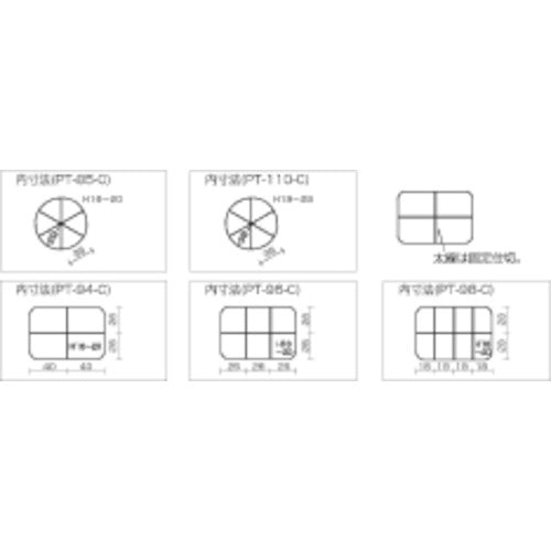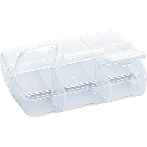 カタログ品番:PT-96-C 特長:●個別フタ付シングルスペースで小物収納に最適です。●ポケットに納まりやすいフラットタイプです。●取り出しやすい底アール付です。 用途:●文具用品、小物、薬など収納可能。 仕様:●色:クリア●外形寸法(mm)間口:90●外形寸法(mm)奥行:67●外形寸法(mm)高さ:23●有効内寸(mm)間口:78●有効内寸(mm)奥行:56●有効内寸(mm)高さ:16●コマ数:6●仕切あり●樹脂製 材質/仕上:●ポリプロピレン(PP)