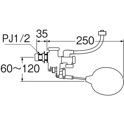 カタログ品番:V46-13X-13 特長:●手洗付用のボールタップです。連結ホース付き 用途:●手洗い付便器用 連結ホース付き 取付部ネジサイズPJ1/2 仕様:●ねじサイズ:PJ1/2●全長(mm):250●ねじ径:使用圧力(MPa)●使用圧力0.1〜0.75MPa 材質/仕上:●銅