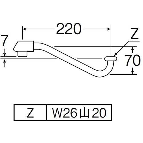 カタログ品番:PA16D-60X-16 特長:●シンクが広々使えます。●パイプ先端に触れても熱くない断熱キャップ付です。 仕様:●パイプ外径(mm):16●高さ(mm):90●長さ(mm):220●ねじサイズ:W26山20●取付ねじ:W26山20 材質/仕上:●黄銅