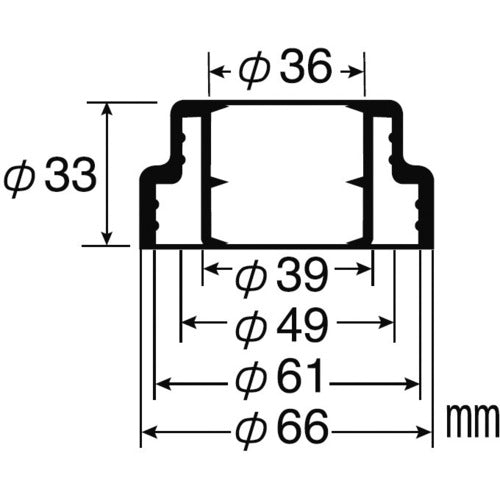 カタログ品番:PH72-840 特長:●32mmの直管・ジャバラホースに使用できます。●ホースに密着して臭いの漏れを防ぎます。 用途:●臭気止め、防虫。 仕様:●外径(mm):66●高さ(mm):33●VP・VU管兼用(パイプ呼び40、50)●使用温度:60℃以下 材質/仕上:●EPDM樹脂
