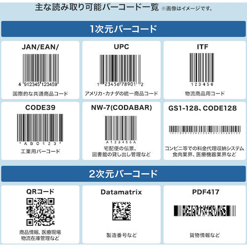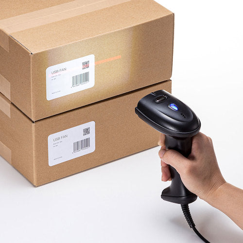 カタログ品番:BCR-2D5BK 特長:●2次元コード・1次元コード両方の読み取りが可能な有線バーコードリーダーです。●30フレームの高速読み取りが可能です。●USB接続でパソコン本体から電源供給されるので、専用電源が不要です。●読み取ったバーコードデータはキーボードデータとして直接パソコンに入力可能です。●スマートフォンやタブレット、パソコンなどの液晶の表示されたコードを読み取ることが可能です。●※QRコードは株式会社デンソーウェーブの登録商標です。 仕様:●色:ブラック●幅(mm):73●奥行(mm):102●高さ(mm):175●インターフェース:USB仕様 Ver.2.0準拠(USB Ver.1.1上位互換)●ケーブル長(m):2●インターフェース:USB仕様 Ver.2.0準拠(USB Ver.1.1上位互換)●入力電圧:5V●電源:5VDC光源:赤色LED、白色LED●走査速度:30フレーム/秒消費電流:最大230mA●使用環境:温度/−10〜55℃、湿度/5〜95%(結露なきこと)●センサー:CMOS●PCS値:≧15%