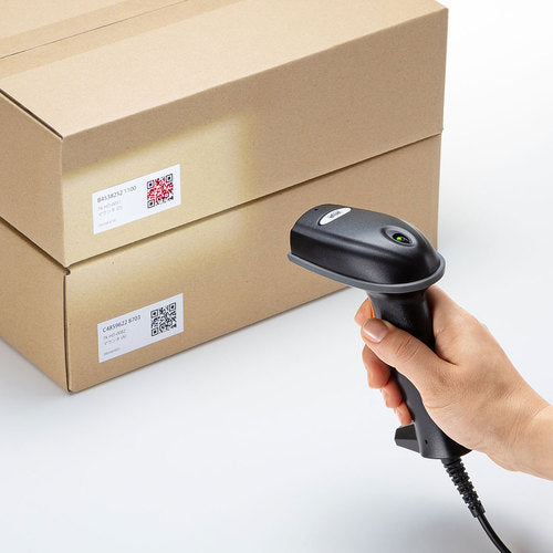 カタログ品番:BCR-005 特長:●2次元コード(QRコード・GS1・DataMatrix)、1次元コード(JAN・CODE39・UPC・EAN)の読み取りが可能な有線バーコードリーダーです。●専用スタンド(別売BCR-005STD)と組み合わせると、オートセンシング機能(自動読み取り機能)が使用が可能です。●30フレーム/秒の高速読み取りが可能です。●USB接続でパソコン本体から電源供給されるので、専用電源が不要です。●読み取ったバーコードデータはキーボードデータとして直接パソコンに入力可能です。 用途:●QRコードの読み取りに。●バーコードの読み取りに。 仕様:●色:ブラック●幅(mm):65●奥行(mm):90●高さ(mm):165●インターフェース:USB HID●読取り方式:CMOS●ケーブル長(m):2●インターフェース:USB HID●電源:5VDC±0.25V●バーコード種類:JAN、EAN-8、EAN-13、UPC-A、UPC-E、CODABBAR、CODE39、CODE93、CODE128、UCC/EAN128、INTERLEAVED2OF5、GS1-databar、ISBN13、ISSN、AztecCODE、DataMatrix、PDF417、QRCODE●PCS値:≧20%●読取深度:●Code39(6.6mil)/30〜60mm●EAN13(13mil)/40〜180mm●DataMatrix(15mil)/20〜120mm●QRcode(15mil)/20〜140mm●PDF417(15mil)/40〜160mm セット内容/付属品:●取扱説明書・保証書