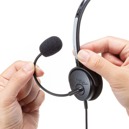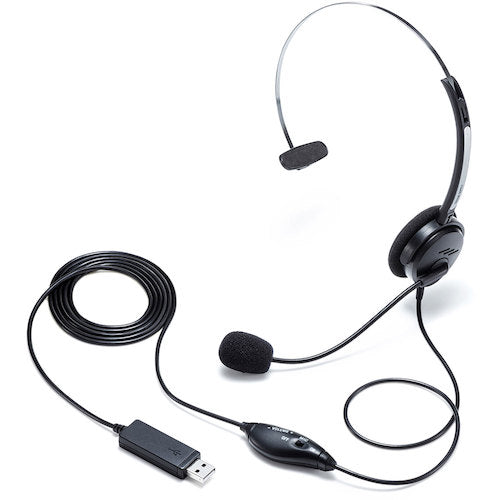 カタログ品番:MM-HSU12BK 特長:●USBポートに接続するだけの簡単接続です。●軽くて快適な装着感で長時間の使用にも最適です。●左右どちらの耳でも使用できます。●まわりの雑音を拾いにくい双指向性性マイクを採用しています。●両側スイング式で耳や頭に合わせて微調整できます。●またフラットにでき収納に便利です。●コールセンターなどに適した片耳オーヘッドタイプの軽量USBヘッドセット。 用途:●コールセンターなどに 仕様:●タイプ:片耳●ケーブル長(m):1.8●保証期間(ヵ月):6●形式:ダイナミック型(モノラル)●最大入力:30mW<マイクロホン●形式:ダイナミック型30mm(モノラル)