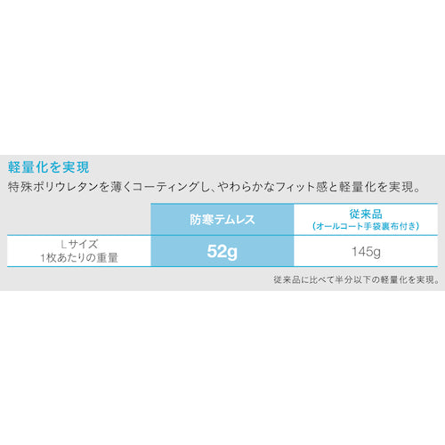 カタログ品番:NO282R-LL 特長:●低温下でも固くなりにくく柔らかで軽い、裏起毛の防寒手袋です。●手袋内部に起毛させたパイル地を採用することにより、保温性を高めています。●-60℃でも柔軟性を保ちます。●とても柔らかいため、ストレスなく作業できます。●透湿性のあるコーティングのため、ムレにくく汗による手の冷えを抑えます。●「暖かい」だけじゃなく、低温下でも固くならずにやわらかく軽い、作業用の防寒手袋。●内側に温かさを保つやわらかいボアタイプの裏起毛を施し、保温性を高めた作業用手袋。●特殊ポリウレタン製作業手袋なので、低温下でも柔軟性を保ち、手の曲げ伸ばしがスムーズ。●冷蔵冷凍倉庫内作業、冬場の土木作業、雪かき作業の他、スノーボード(スノボ)やスキーなどのレジャーでも、スキー手袋(スキーグローブ)として使用可能。 用途:●寒冷地、冷凍庫、冷凍室内での作業。●寒い季節の屋外作業に。 仕様:●色:ブルー●サイズ:LL●全長(cm):28.0●手のひら周り(cm):26.5●中指長さ(cm):8.3●すべり止め:あり 材質/仕上:●表:ナイロン、ポリウレタン、その他●裏:アクリル、ポリウレタン、その他
