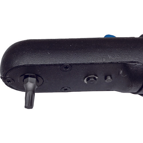 カタログ品番:SP-7250H 特長:●薄型なので、狭い場所でも使用可能です。●使いやすいラチェットスタイルです。 用途:●狭い場所の自動車整備、一般産業のネジ脱着に。 仕様:●最大締付トルク(N・m):32●無負荷回転数(min[[の−1乗]]):290●空気消費量([[M3]]/min):0.2●ホース取付口:NPT1/4●排気:後方●全長(mm):200●使用空気圧力(MPa)統合:0.62●ビット差込口(mm):6.35●使用空気圧(MPa):0.62●1/4”HEX.(6.35mm)ドライブ