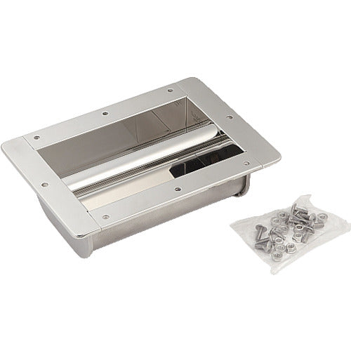 カタログ品番:HH-M200 特長:●オールステンレス鋼製です。●厚手の工業用手袋をしていても操作しやすい大型の堀込取手です。●バーの長さは200mmと400mmの2種類です。●製品本体からバー部分の出っ張りがないため、邪魔になりません。 用途:●特殊車両、コンテナ、大型扉、船舶など。 仕様:●幅(mm):260●奥行(mm):81.4●高さ(mm):186.3●穴径(mm):6.5●取付ピッチ(mm):87.5●鏡面研磨 材質/仕上:●バー・カップ:ステンレス鋼(SUS304)●キャップ:ステンレス鋼(SCS13) セット内容/付属品:●十字穴付きトラス小ねじM6×16、フランジ付ナットM6