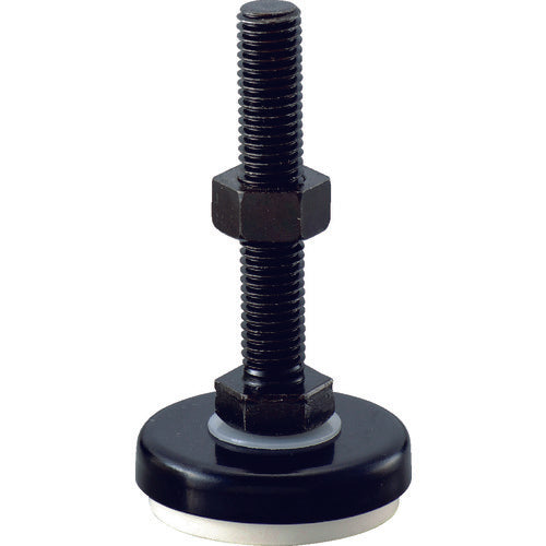 カタログ品番:ADWH40-8-60 特長:●スチール部分に亜鉛メッキを施しています。 用途:●工作機械・自動販売機・コンベヤ・コンピューターラック・制御盤・理化学機械・OA機器・各種什器など。●屋外などでさびやすい場所での使用。 仕様:●許容荷重(kgf):340●ねじ寸法:M8●ねじ長さ(mm):60●全高(mm):78.5●台座径(mm):40●許容荷重(N):3332●ナット付 材質/仕上:●ねじ:スチール●台座:スチール●底部:エチレンプロピレンゴム(EPDM)