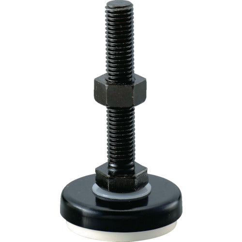 カタログ品番:ADWH40-10-50 特長:●スチール部分に亜鉛メッキを施しています。 用途:●工作機械・自動販売機・コンベヤ・コンピューターラック・制御盤・理化学機械・OA機器・各種什器など。●屋外などでさびやすい場所での使用。 仕様:●許容荷重(kgf):580●ねじ寸法:M10●ねじ長さ(mm):50●全高(mm):70.0●台座径(mm):40●許容荷重(N):5684●ナット付 材質/仕上:●ねじ:スチール●台座:スチール●底部:エチレンプロピレンゴム(EPDM)