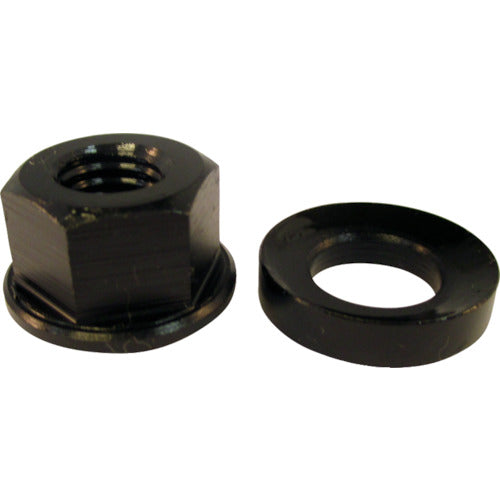 カタログ品番:10M-SFN 特長:●球面タイプなので若干の角度に対応可能です。 用途:●治具本体の締め付け作業に。 仕様:●対辺寸法(mm):17●適合ボルト:M10●高さ(mm):17.0●フランジ径(mm):22 材質/仕上:●スチール(S45C)●処理:焼き入れ(28〜35HRC)、黒染仕上げ