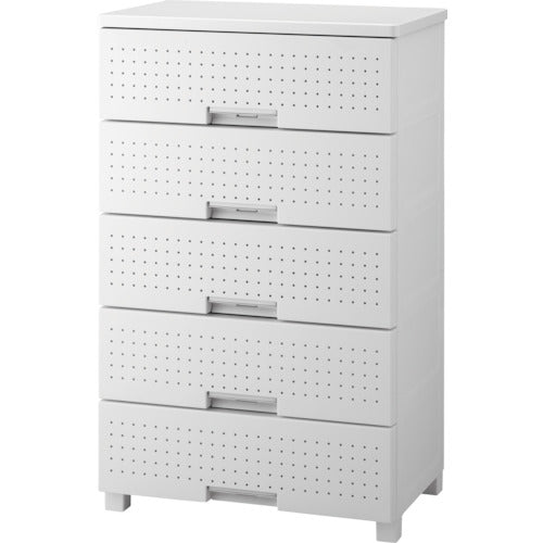 カタログ品番:110013905 特長:●前パネルがペグボード仕様になったタイプです。●ペグボードを使って、様々な場所に合わせて『飾る・見せる収納』が楽しめます。●引き出しはあんしんロック付きで、移動時などの不意な飛び出しを防止します。●軽くて丈夫なハニカム構造天板を採用しています。●脚部は床面を傷つけにくい滑り止め付きです。 仕様:●引出し数:5●色:ホワイト●間口(mm):650●奥行(mm):410●高さ(mm):1050●引出し内寸(mm)間口:570●引出し内寸(mm)奥行:345●引出し内寸(mm)高さ:150●引出し耐荷重(kg):5●天板耐荷重(kg):10●W65×D41×H105 材質/仕上:●天板:プリント化粧木質繊維板●前パネル:スチロール●引出し・外枠・ロック・ローラー・脚:ポリプロピレン●すべり止め:ポリエチレン