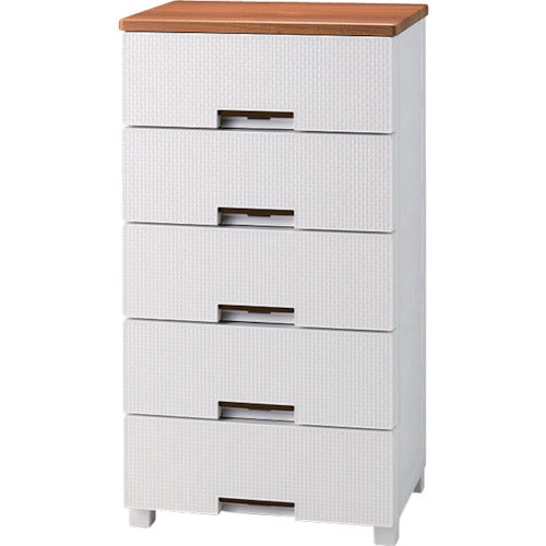 カタログ品番:110006998 特長:●編目模様を施したナチュラル感のあるパネルです。●移動時などの不意な飛び出しを防止する「あんぜんロック」付です。●左右サイドローラー内蔵で、軽い操作の「スムーズ引き出し」です。●側面、背面は壁構造で、ホコリが入りにくく清潔です。●太陽光発電にて、生産工場で使用する電力の0.833%を供給しています(2021年度実績)。 仕様:●引出し数:5●色:ホワイト●間口(mm):550●奥行(mm):410●高さ(mm):1050●引出し色:ホワイト●容量(L):25●引出し内寸(mm)間口:472●引出し内寸(mm)奥行:345●引出し内寸(mm)高さ:150●専用脚付(すべり止め付)●完成品●天板:木製(低ホルムアルデヒド仕様) 材質/仕上:●本体・引き出し・ロック・ローラー・脚:ポリプロピレン●すべり止め:ポリエチレン(PE)●前パネル:スチロール樹脂●天板:MDF化粧板