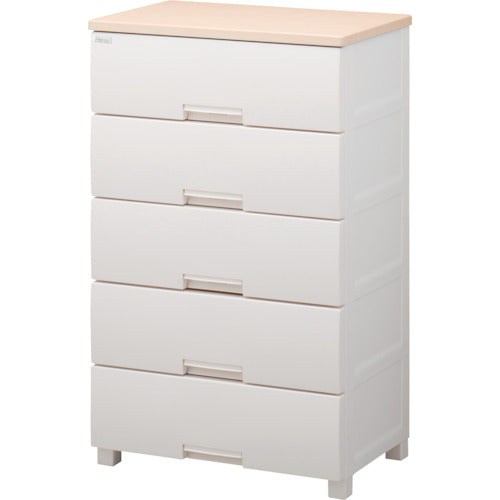 カタログ品番:110008003 特長:●移動時などの不意な飛び出しを防止する「あんぜんロック」付です。●左右サイドローラー内蔵で、軽い操作の「スムーズ引き出し」です。●側面、背面は壁構造で、ホコリが入りにくく清潔です。●太陽光発電にて、生産工場で使用する電力の0.833%を供給しています(2021年度実績)。 仕様:●引出し数:5●色:ホワイト(本体)メープル(天板)●間口(mm):650●奥行(mm):410●高さ(mm):1050●天板色:メープル●引出し容量(L):29●天板耐荷重(kg):10●引出し内寸(mm)間口×奥行×高さ:570×345×150●専用脚付(すべり止め付)●3〜5段タイプ:完成品●7段タイプ:組立品(工具不要)●別売品のフィッツ差込式キャスター(ストッパー付)対応可(811001004)●天板:木製 材質/仕上:●本体・引き出し・ロック・ローラー・脚:ポリプロピレン(PP)●すべり止め:ポリエチレン(PE)●前パネル:スチロール樹脂●天板:MDF化粧板(中密度繊維板)