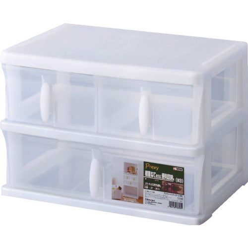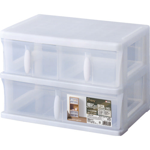 カタログ品番:110005860 特長:●引き出しが透明のため、外側からでも中身が確認できます。●備品や部品の整理整頓に最適です。●積み重ねて使えるジョイントパーツが付いています。●カラーボックス内でも使えます。 仕様:●容量(L):14●色:クリアナチュラル●外形寸法(mm)間口:390●外形寸法(mm)奥行:270●外形寸法(mm)高さ:265●有効内寸(mm)間口:(上段)160(下段)340●有効内寸(mm)奥行:(上段)235(下段)235●有効内寸(mm)高さ:(上段)99(下段)99●引出し耐荷重(kg):(下段)0.9●サイズ:2段(上段2列引き出し)●有効内寸(mm)間口×奥行×高さ:(上段)160×235×99 (下段)340×235×99●収納目安:(大引き出し)A4ファイル、(小引き出し)ハガキ2列●収納の目安(約):下段(レギュラー)ポロシャツ(半袖)が4枚●積み重ね使用:3個まで可能●耐荷重(約):下段(レギュラー):0.9kg(引出し1個あたり)●引出しストッパー機能付 材質/仕上:●ポリプロピレン(PP) セット内容/付属品:●ジョイントパーツ(2個)