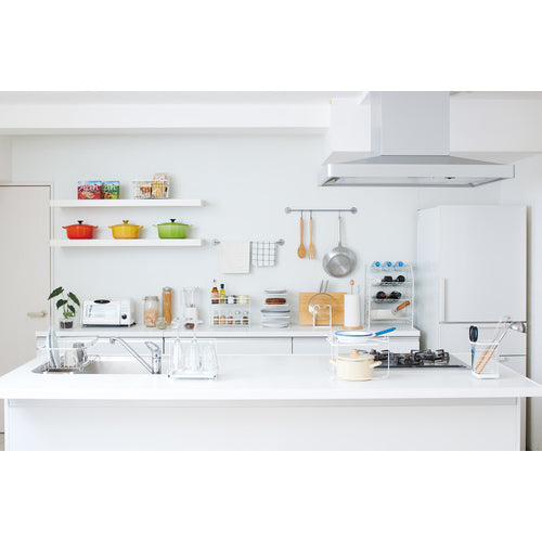 カタログ品番:811000654 特長:●毎日使うラップやキッチンペーパーをまとめて収納できます。吊り下げ部分にすべり止めが付いているので、安定感があります。●吊戸棚下のスペースを有効活用できる吊り下げ収納ラックです。●スチールに粉体塗装を施した丈夫でさびにくいデザインです。●ラップやアルミホイル、キッチンペーパーをまとめて収納できます。 仕様:●色:ホワイト●幅(mm):290●奥行(mm):260●高さ(mm):160●ゴム脚付 材質/仕上:●本体:スチール(粉体塗装)●ゴム脚:ポリ塩化ビニル