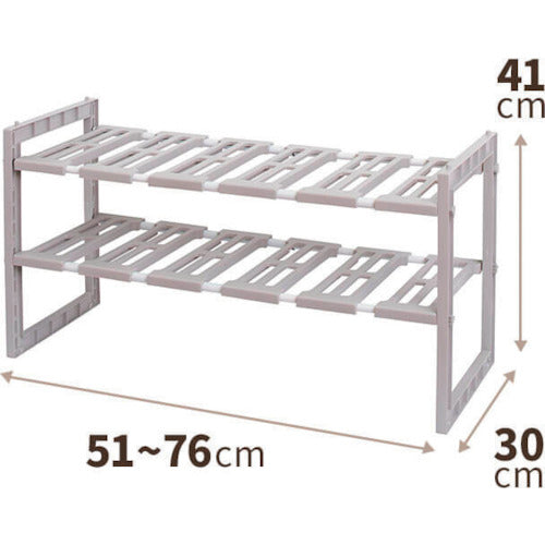カタログ品番:811000657 特長:●シンク下の配管を避けて簡単に組み立て・設置ができる伸縮式ラックです。●高さを12段階で選べます。●横幅も自由自在に変えることができるので、シンク下の空間を有効活用できます。 仕様:●幅(mm):510〜760●奥行(mm):300●高さ(mm):410●色:グレー●耐荷重(kg):10●外形寸法(mm)間口:510〜760●外形寸法(mm)奥行:300●外形寸法(mm)高さ:410 材質/仕上:●棚板・フレーム:再生ポリプロピレン●伸縮パイプ:スチール(エポキシ粉黛塗装)●固定ネジ:スチール+ポリプロピレン