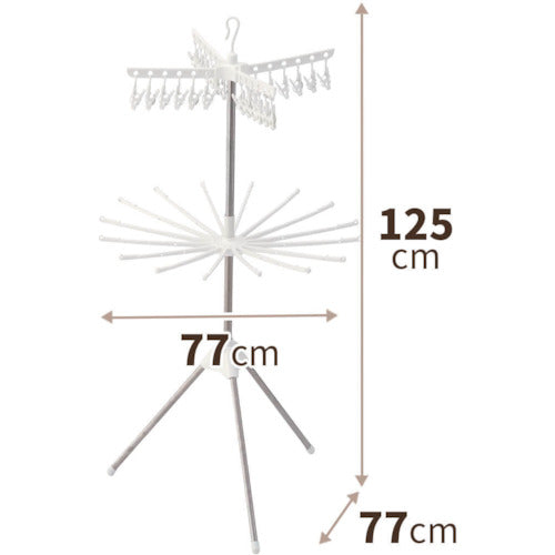 カタログ品番:811000449 特長:●スタンド型の室内物干しです。●使わない時は折り畳んでスリムに収納可能です。●フェイスタオルが16枚、靴下が12足干せます。 仕様:●耐荷重(kg):6.0●幅(mm):770●奥行(mm):770●高さ(mm):1250●色:ホワイト●外形寸法(mm)高さ:1250●外形寸法(mm)間口:770●外形寸法(mm)奥行:770●W77×D77×H125●収納時(約):幅16×奥行16×高さ152cm●干せる量の目安(約):フェイスタオルが16枚、靴下が12足●全体耐荷重(約):6kg●お客様組立品(工具不要) 材質/仕上:●ステンレス巻きスチールパイプ●【樹脂部品】ポリプロピレン、ポリエチレン●【金属部品】スチール(メッキ)