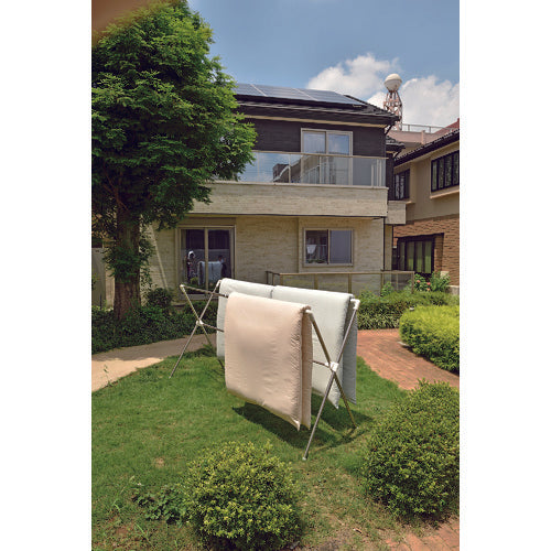 カタログ品番:811000451 特長:●がっちり設計の太いパイプを使用した布団干しです。●布団を4枚まとめて干せます。●布団が地面につきにくい高さ設計です。●衣類も干せるハンガーフック付きです。 仕様:●幅(mm):1400〜2350●奥行(mm):760●高さ(mm):1250 材質/仕上:●本体:ステンレス巻きスチールパイプ、ステンレス●金属部品:スチール(メッキ)、ステンレス●樹脂部品:ポリプロピレン、ABS樹脂、ポリエチレン