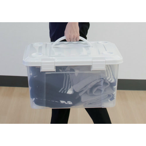 カタログ品番:811000421 特長:●中身が一目でわかるクリアタイプです。●フタにハンドルが付いているので、キャビネットから取り出したり、持ち運びする時には、とても便利になっています。●フタは片側開きなので、フタを付けたまま収納できます。●向きの変えられるローラー付です。 仕様:●容量(L):10●色:ホワイト●外形寸法(mm)間口:360●外形寸法(mm)奥行:270●外形寸法(mm)高さ:210●有効内寸(mm)間口:300●有効内寸(mm)奥行:200●有効内寸(mm)高さ:170●収納目安:塗料スプレー缶11本●耐荷重(kg):4.5●有効内寸(約):幅30×奥行20×高さ17cm【突起含まず】●積み重ね使用:3段まで可能 材質/仕上:●ポリプロピレン(PP)