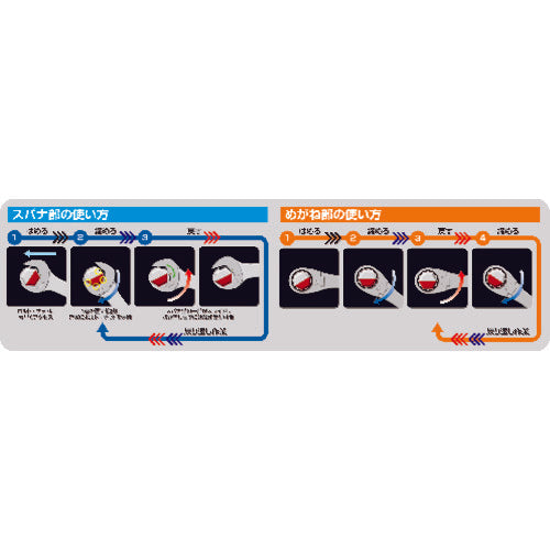カタログ品番:RMFQ-08 特長:●スパナ部・めがね部ともに抜差し不要で早回し操作が可能です。●配管のフレアナットや狭い場所での締付け作業に最適です。●本体は薄形のストレート形状のため、奥まった狭い場所での作業に威力を発揮します。●安全ロープ取り付け穴付です。(RMFQ-14以上)●グッドデザイン賞受賞品です。 仕様:●対辺寸法(mm):8●厚さ(mm)スパナ:4.1●厚さ(mm)めがね:6.5●全長(mm):127●対辺(mm):8 材質/仕上:●構造用鋼●表面処理:メッキ処理