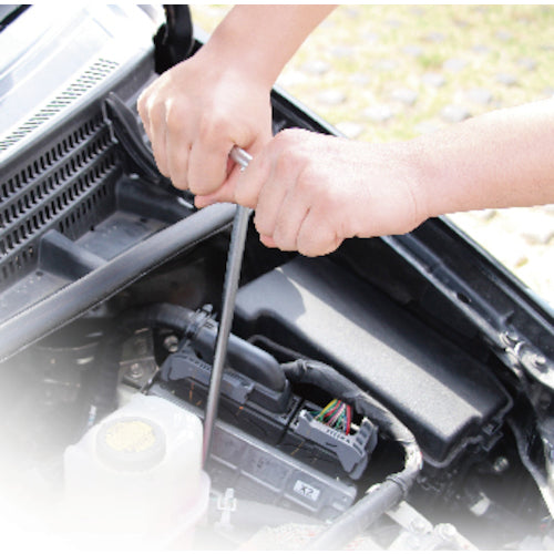 カタログ品番:TWL-10L 特長:●全長が長く、ソケット部がディープなタイプのT形レンチです。●ソケット部は6角形状です。 用途:●ボルト・ナットの締付け・緩め作業用。 仕様:●対辺寸法(mm):10●全長(mm):365●全幅(mm):200●対辺(mm):10●ソケット部6角形状 材質/仕上:●構造用鋼