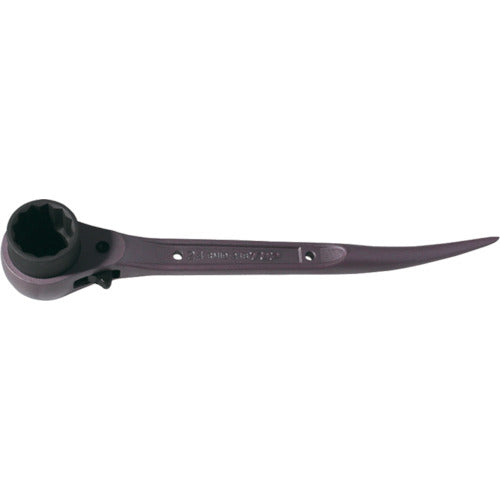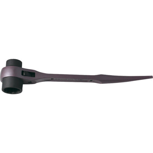 カタログ品番:RM-19X24S 特長:●正逆は切り替え爪式です。●爪の切り替え部の開口が大きく泥水、砂などが入ってもすぐ排除されます。●柄部のシノは鉄骨の穴合わせに便利です。●安全ロープ取り付け穴を設けています。●過酷な条件でも極めて安定したラチェット作動が得られます。 用途:●ボルト・ナットの締め緩めに。 仕様:●対辺寸法(mm):19×24●厚さ(mm):50●全長(mm):250●色:ローズ●作業性を追及したコンパクトなショートタイプ。頭部は加工の際の穴埋めを施してあり、円滑なラチェット駆動を維持し、表面はサイズ毎に識別出来るカラー塗装です。足場組立や型枠工事、鳶職人から農家や日曜大工まで幅広くご使用頂けます。 材質/仕上:●クロムバナジウム鋼●表面処理:塗装 注意:●ボルト・ナットに合ったサイズを使用し、斜め掛け・浅掛けや柄部にパイプを差し込んで過大な力を加えないでください。●高所作業で使用するときは、安全ひも等の落下防止策をしてください。●工具の使用目的以外には使用しないで下さい。