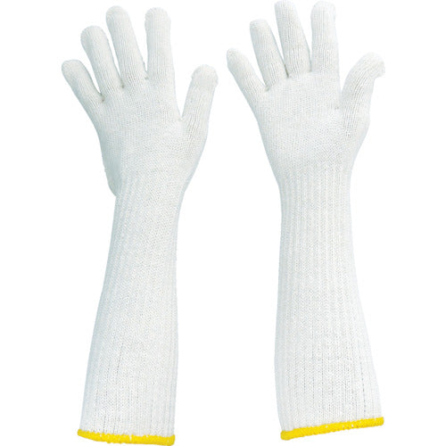 カタログ品番:TLLG 特長:●全長約380mmのロング手袋で肘先あたりまで、カバーできます。●作業着の袖上から装着すると、細かいゴミなどの侵入を防ぐことができます。●程よい締め付け感があり、ずれにくいです。 仕様:●色:生成●サイズ:フリー●全長(cm):38.0●手のひら周り(cm):18.0●中指長さ(cm):8.0●厚さ(mm):2.1●ゲージ数:7●7ゲージ編 材質/仕上:●綿●ポリエステル