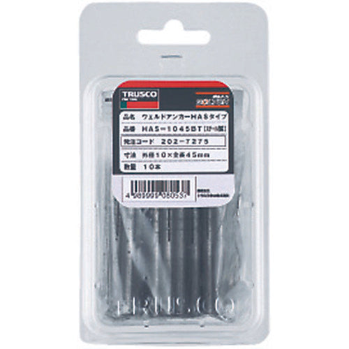 TRUSCO ウェルドアンカー スチール 10X45 10本入 (コンクリート用アンカー/本体打ち込み式)溶接アンカー HAS-1045BT 1 PK