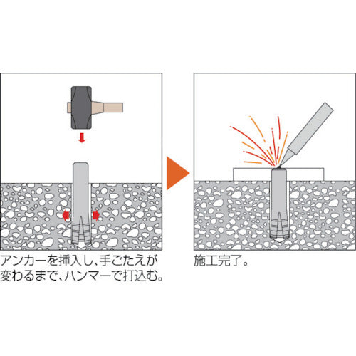 カタログ品番:HAS-1045BT 特長:●各種金物の溶接ができます。●打込むだけの簡単施工です。 用途:●ドア枠取り付け、窓枠取り付け、シャッター取り付け、補修工事などに。 仕様:●外径(mm):10●全長(mm):45●ドリル径(mm):10.5●埋込深さ(mm):30●引張最大荷重(kN):12.6●パック入 材質/仕上:●スチール 注意:●引張最大荷重は、コンクリート強度Fc=21N/[[MM2]]時の値です。