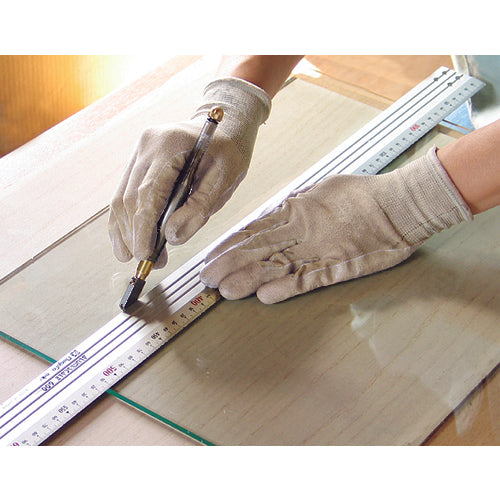 カタログ品番:TGC-03 特長:●刃先は超硬を使用し、ガラス板のスムーズな切断が可能です。●オイル注入タイプで、切断時自動的にオイルが流出します。 用途:●板ガラスの切断に。 仕様:●全長(mm):163●切断厚さ(mm):3〜5 材質/仕上:●刃部:超硬合金 ●ホルダー部:プラスチック セット内容/付属品:●オイル注入用スポイト1個 注意:●最初にオイルは入っていません。灯油、軽油、ミシン油など粘度のないオイルをご使用下さい。