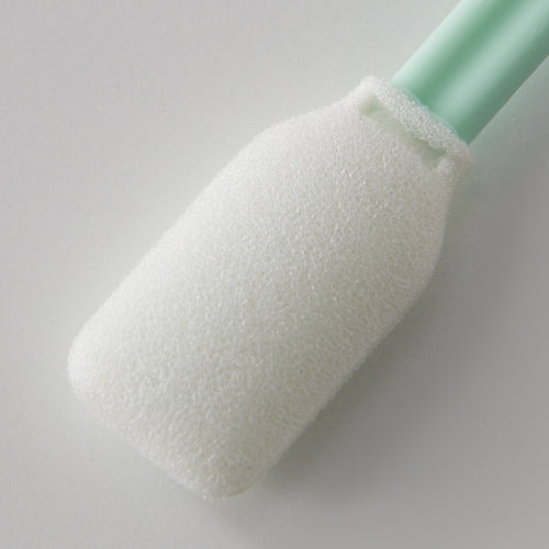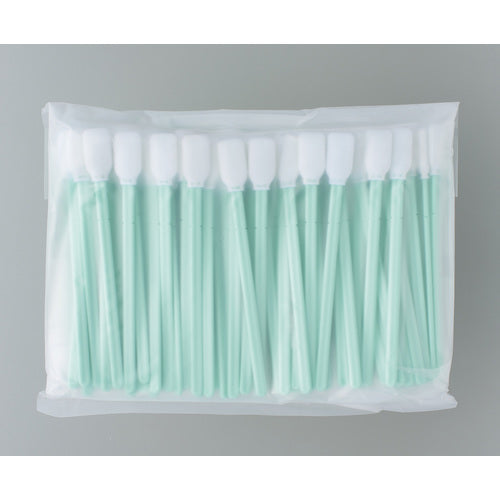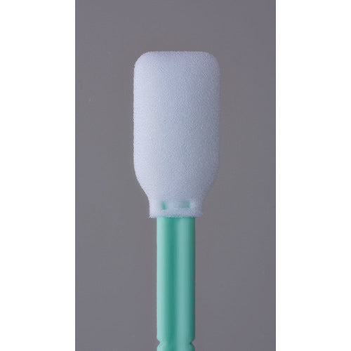 カタログ品番:CFS-12 特長:●ポリウレタン製で発塵性・溶解性が低く、スポンジタイプなので吸収力が優れています。●ハンドルが長く、届きにくいエリアの清掃やメンテナンス作業等に適しています。●各種組み立て作業から一般工業分野まで幅広く利用できます。●IPA等の溶剤と使用可能です。●粘着剤を使用していません。●クラス100のクリーンルームで洗浄後2重パックされています。 用途:●塵等の異物除去。●液体の塗布やふき取り。●クリーンルーム内の作業。 仕様:●先端径(mm):12.0×6.5×23●軸長(mm):100●軸径(mm):5.6×2.6●全長(mm):123●梱包形態:2重包装●箱入数:100●先端長さ(mm):23●クリーンパック仕様 材質/仕上:●ヘッド:ポリウレタン●ハンドル:ポリプロピレン