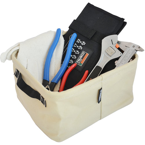 カタログ品番:TCC-5-BE 特長:●6号防水加工帆布を使用した、万能収納ケースです。 仕様:●色:ベージュ●幅(mm):200●奥行(mm):250●高さ(mm):140●容量(L):7 材質/仕上:●6号防水加工帆布