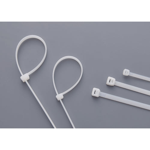 カタログ品番:TRCVJ-364 特長:●国内製造品です。●屋内使用に適しています。●汎用性の高いナイロン結束バンドです。●強い結束力をもち、長期期間での使用に耐えられます。 用途:●ワイヤー、ケーブル、ホースなどの固定や結束に。 仕様:●色:白●幅(mm):5.0●長さ(mm):364●厚さ(mm):1.4●最大結束径(mm):105●引張強度(N):392●最小結束径(mm):3.0●一度締めると切断しない限り外す事はできません。●屋内用●使用温度範囲:−40〜85℃●UL規格品(94V-2)相当 材質/仕上:●ナイロン66 注意:●使用温度範囲は-40℃〜85℃です。