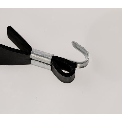 カタログ品番:GR-2020AD1 特長:●両端にフックとDカンの金具が付いてますので、簡単に取り付けができます。●Dカン自体をコの字止めしているため、強度も高くしっかりと固定されます。 仕様:●色:黒●幅(mm):20●長さ(m):2.0●厚さ(mm):3●片端:フック+Dカン金具付き 材質/仕上:●再利用タイヤチューブ●金具部:スチール 注意:●タイヤチューブの再利用品のため厚さや形状が一定していない部分があります。