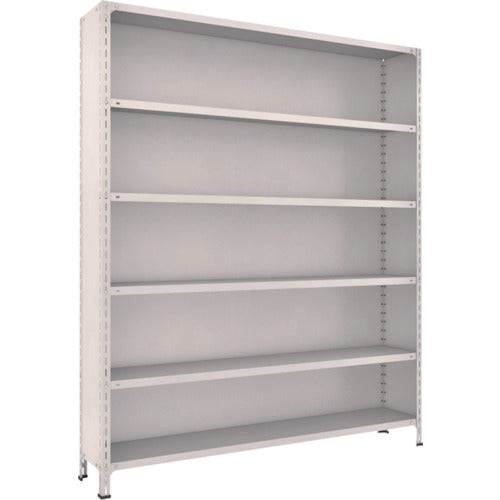カタログ品番:76V-26 特長:●塗装は環境に配慮した粉体塗装です。●背板・側板付棚は物品の転落や混同を防止するのに役立ちます。●間口890mmで高さ1204・1804mmサイズについては、両開扉を付けることが可能です。 仕様:●間口(mm):1800●奥行(mm):300●高さ(mm):2100●有効間口(mm):1726●色:ネオグレー●棚段数(段):6●外形寸法(mm)間口:1815●外形寸法(mm)高さ:2104●組立目安:2人50分●外寸奥行(mm):315●棚板調整ピッチ:50mm●有効間口寸法は、間口-74mm●均等積載量:100kg/段●最大積載量:1000kg/台 材質/仕上:●本体:スチール(粉体塗装)●ベース:ポリプロピレン(再生材100%使用) 注意:●集中荷重になりますと耐荷重能力は半減します。必ず均等に荷重を分布させてご使用ください。