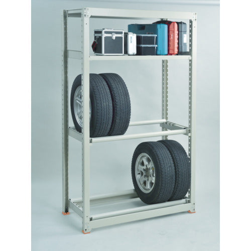 カタログ品番:M3-6573Y1B 特長:●タイヤ受けパイプは65mmピッチ、4段階で取付幅を調整できます。●ボルトを1本も使用していないボルトレス構造で、分解・組み立て作業を短縮できます。●棚の段数変更25mmピッチで、自由に調整、変更ができます。●高さ、奥行が同じであれば、増結することができます。また、支柱を兼用することにより、コストダウンが図れます。●優れた断面構造で、荷重、横からのねじれにも強いC型形状の支柱を採用しています。●樹脂ベースの使用により、床を傷つけません。 仕様:●間口(mm):1500●奥行(mm):731●高さ(mm):1811●有効間口(mm):1440●色:ネオグレー●均等積載量(kg/段):3●最大積載量(kg/台):2500●タイプ:連結型●棚板調整ピッチ(mm):25●棚板段数+タイヤ段数(段):3+1●棚板調整ピッチ(mm):25●均等積載量:300kg/段●最大積載量:2500kg/台●タイヤ受け金具調整ピッチ:65mm 材質/仕上:●本体:スチール(粉体塗装)●ベース:ポリプロピレン(再生材100%使用) 注意:●集中荷重になりますと耐荷重能力は半減します。必ず均等に荷重を分布させてご使用ください。●連結型のみではご使用できません。●棚板段数には天板も含みます。