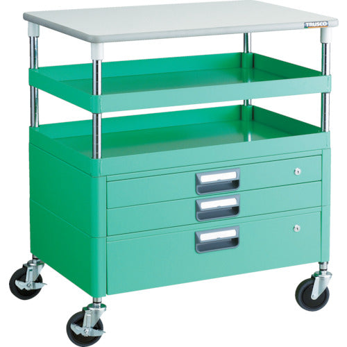 TRUSCO ツールワゴン フェニックスワゴン 抗菌 省音 750X500XH880 引出 天板付 ヤンググリーン PEW-972VXT-YG 1 台
