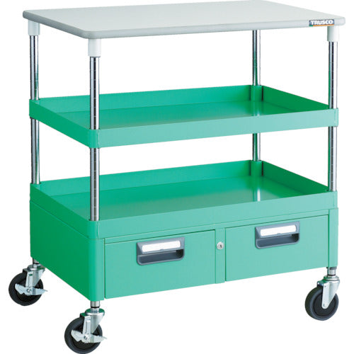 TRUSCO ツールワゴン フェニックスワゴン 省音 750X500XH880 引出 天板付 ヤンググリーン PEW-972WT-YG 1 台