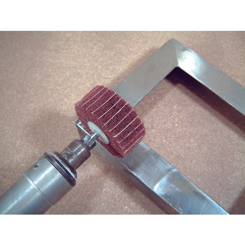 カタログ品番:FM3025-60 特長:●ナイロンとペーパー(A砥粒)のミックスタイプです。●絡み合ったナイロン繊維に砥材をまぶし固めたナイロン研磨材を使用しています。●ペーパー研磨布の当たりに比べ、ナイロン研磨材は絡み合った繊維がクッションの役割を果たし、被研磨材を削り込みすぎることを防ぎます。●「自生作用」によっていつも新しい表面が現れるため、目づまりが起こりにくく、研磨の初期から終期まで仕上げ面の表面粗さが一定です。●小型、軽量のヘアライン、傷取り専用です。 用途:●ステンレス、アルミのヘアライン作業に最適。●金属製品の傷、バリ、ビード取りに。●木工製品の木地研磨や塗装研磨に。●使用工具:ストレートグラインダー。 仕様:●粒度(#):60●外径(mm):30●幅(mm):25●軸径(mm):6●軸長(mm):40●不織布枚数(枚):13●最高使用回転数(rpm):4000●最高使用回転数:4000rpm●外径×幅×軸径×軸長:30×25×6×40mm 材質/仕上:●軸:スチール 注意:●最高使用回転数以下でご使用ください。●作業時は必ず安全帽、安全メガネなどの保護具をご着用ください。