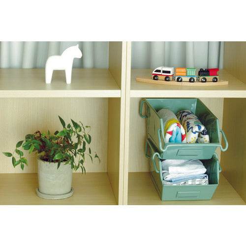 カタログ品番:B-30 特長:●重ねたままでも内容物が取り出せます。 用途:●部品の管理・収納。 仕様:●容量(L):3.8●色:緑●外形寸法(mm)間口:370●外形寸法(mm)奥行:236●外形寸法(mm)高さ:151●有効内寸(mm)間口:274●有効内寸(mm)奥行:174●有効内寸(mm)高さ:133 材質/仕上:●スチール(表面処理:メラミン焼き付け塗装) 注意:●部品などを内に収納したままで積み重ねる際は、最大で15kg/個で3段積みまででご使用ください。●液体の使用はできません。