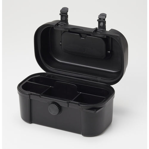 カタログ品番:TAK-11BK 特長:●耐久性、密閉性の高い樹脂ツールケースなので、精密機械の保管、移送に最適です。●日常小物入れ使用にも最適です。 用途:●精密機器の保管、移送に。 仕様:●色:ブラック●外形寸法(mm)間口:260●外形寸法(mm)奥行:155●外形寸法(mm)高さ:139●有効内寸(mm)間口:233●有効内寸(mm)奥行:122●有効内寸(mm)高さ:85●南京錠(別売):取付可(φ6mm)●耐荷重(kg):6●完全防水ではない●仕切なし 材質/仕上:●本体:ポリプロピレン(PP)