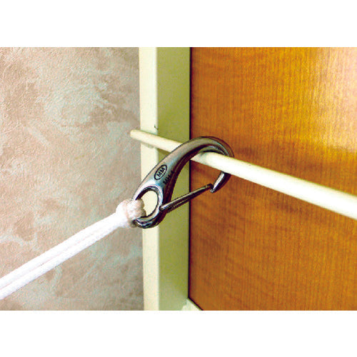 カタログ品番:TMF-1 特長:●ばね状のリング部分を押し込むことで開閉することができます。●フック部とチェーン・ロープを入れる部分が分かれています。 用途:●チェーン・ワイヤ・ロープなどの吊り具としての端末金具、ジョイント金具に。 仕様:●使用荷重(kN):0.2●D(mm):7●L(mm):50●S(mm):11●W(mm):24●T(mm):5●d(mm):7●t(mm):5 材質/仕上:●ステンレス(SUS304)