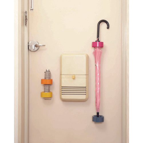 カタログ品番:MGKS1-BR 特長:●マグネット付きなので玄関などのドアやロッカーなどに付けてコンパクトに収納可能です。●上下が分かれるので傘の長さに合わせて位置を調整できます。●長傘と折りたたみ傘、両方を収納可能です。●収納時などに雨滴が床面に飛散しません。 用途:●省スペースの傘立てとして。 仕様:●間口(mm):100●奥行(mm):102●高さ(mm):113●色:ブラウン●傘本数(本):1●耐荷重(g):1.2 材質/仕上:●本体:スチロール樹脂●磁石カバー:ポリプロピレン●サポート材:鉄