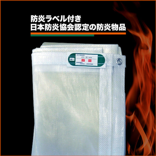 カタログ品番:LCM-3654-TM 特長:●焼却処理時、有害なダイオキシン類の発生がありません。●風合いがしなやかで、シワがつきにくく、現場の美観を引き立てます。●軽くて作業性に優れます。●清涼感のあるホワイトで、採光性・透視性が高く、中で作業をしている方も作業効果が上がります。 用途:●建築工事養生用。●塗装工事用。(飛散防止)●粉じん、ホコリ除け。 仕様:●幅(m):3.6●長さ(m):5.4●厚さ(mm):0.24●ハトメ数(個):60●ハトメピッチ(cm):30●引張強度:縦290N/3cm、横170N/3cm●引裂強度:縦120N、横140N●色:クリア●目合(mm):0.5●厚さ:0.24mm●消防法で定められた防炎物品●目合い(網目の大きさ):0.5mm●防炎表示者認定番号:AFE330085 材質/仕上:●シート:ポリプロピレン(PP)●ハトメ:アルミ(内径:9mm)