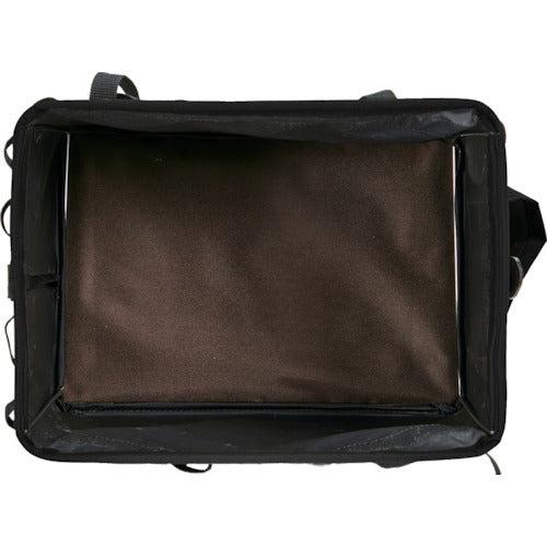 カタログ品番:TOB350-BK 特長:●工具・道具・部品の収納や運搬など、DIYからアウトドアまで幅広くご利用いただける収納コンテナバケツです。●不要時はワイヤーを畳むだけで、簡単にコンパクト収納ができるため、持ち運びにも便利です。●丈夫な布地でゴム脚付きのため、過酷な環境下においても汚れを気にせず安心してお使いいただけます。●肩掛け用のショルダー紐付きです。●ベルトループにお好みでカラビナやフックの取り付けが可能です。 用途:●工具・道具・部品の収納や運搬などの収納に 仕様:●色:ブラック●幅(mm):350●奥行(mm):260●高さ(mm):340●容量(L):30.9●タイプ:フタ無●ポケット数(個):内0/外1 材質/仕上:●ポリエステル