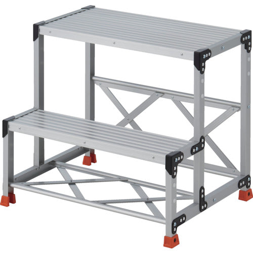 カタログ品番:TSF-287 特長:●底面にも筋交いが入っており、安定感に優れています。●オールアルマイト仕上げです。●滑り止めキャップはスクリベットで取り付けていますのでプラスドライバーでの交換が可能なアルミ製作業用踏台です。●安定感・固定性に優れた工場向けの作業台です。●滑り止めキャップにゴミがたまりにくくなっています。 用途:●工場、倉庫内での作業に。 仕様:●最大使用質量(kg):150●段高(mm):350●天板高さ(m):0.7●天板寸法(mm):800×400●設置寸法(mm)間口:820●設置寸法(mm)奥行:629●段数(段):2●踏面タイプ:高強度タイプ●踏ざん踏面幅(mm):200●設置寸法(mm)間口×奥行:820×629●組立式●アルマイト仕上●最大仕様質量(kg):150 材質/仕上:●アルミ合金