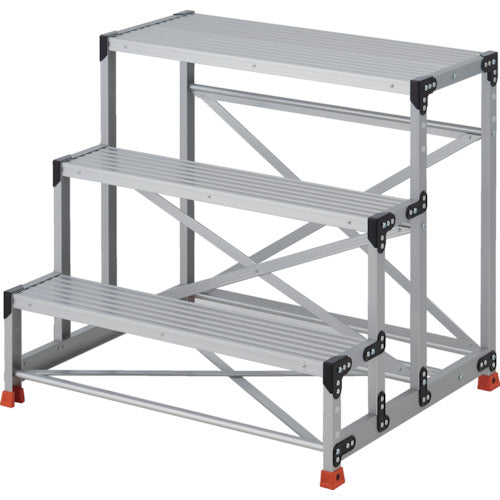 カタログ品番:TSF-3109 特長:●底面にも筋交いが入っており、安定感に優れています。●オールアルマイト仕上げです。●滑り止めキャップはスクリベットで取り付けていますのでプラスドライバーでの交換が可能なアルミ製作業用踏台です。●安定感・固定性に優れた工場向けの作業台です。●滑り止めキャップにゴミがたまりにくくなっています。 用途:●工場、倉庫内での作業に。 仕様:●最大使用質量(kg):150●段高(mm):300●天板高さ(m):0.9●天板寸法(mm):1000×400●設置寸法(mm)間口:1020●設置寸法(mm)奥行:832●段数(段):3●踏面タイプ:高強度タイプ●踏ざん踏面幅(mm):200●設置寸法(mm)間口×奥行:1020×832●組立式●アルマイト仕上●最大仕様質量(kg):150 材質/仕上:●アルミ合金