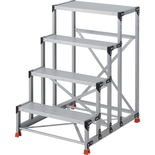 カタログ品番:TSF-4812 特長:●底面にも筋交いが入っており、安定感に優れています。●オールアルマイト仕上げです。●滑り止めキャップはスクリベットで取り付けていますのでプラスドライバーでの交換が可能なアルミ製作業用踏台です。●安定感・固定性に優れた工場向けの作業台です。●滑り止めキャップにゴミがたまりにくくなっています。 用途:●工場、倉庫内での作業に。 仕様:●最大使用質量(kg):150●段高(mm):300●天板高さ(m):1.2●天板寸法(mm):800×400●設置寸法(mm)間口:820●設置寸法(mm)奥行:1035●段数(段):4●踏面タイプ:高強度タイプ●踏ざん踏面幅(mm):200●設置寸法(mm)間口×奥行:820×1035●組立式●アルマイト仕上●最大仕様質量(kg):150 材質/仕上:●アルミ合金