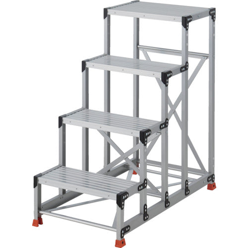 カタログ品番:TSF-462512 特長:●底面にも筋交いが入っており、安定感に優れています。●オールアルマイト仕上げです。●滑り止めキャップはスクリベットで取り付けていますのでプラスドライバーでの交換が可能なアルミ製作業用踏台です。●安定感・固定性に優れた工場向けの作業台です。●滑り止めキャップにゴミがたまりにくくなっています。 用途:●工場、倉庫内での作業に。 仕様:●最大使用質量(kg):150●段高(mm):300●天板高さ(m):1.2●天板寸法(mm):600×400●設置寸法(mm)間口:620●設置寸法(mm)奥行:1185●段数(段):4●踏面タイプ:高強度タイプ●踏ざん踏面幅(mm):250●設置寸法(mm)間口×奥行:620×1185●組立式●アルマイト仕上●最大仕様質量(kg):150 材質/仕上:●アルミ合金