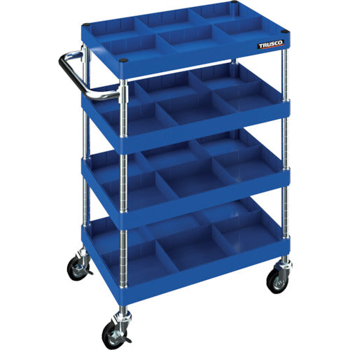 TRUSCO 【売り切り廃番】フレックスワゴン 600X400XH880 4段 75パイゴムキャスター ブルー FLWB-814-G75-B 1 台