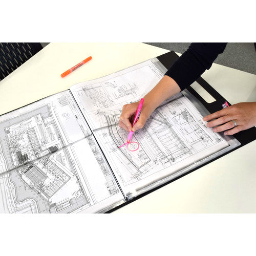 カタログ品番:TKKZM-A3 特長:●図面をファイルに入れたまま、書き込みができる図面ファイルです。●現場で書き込みをして、そのままキャリングバッグとして持ち帰ることができます。●見開きA2サイズも入ります。 仕様:●色:黒●タイプ:A3●縦(mm):385●横(mm):440●収納数(枚):20●背幅(mm):15●A3,A2対応●名刺ポケット付き●持ち手付き 材質/仕上:●表紙:ポリプロピレン